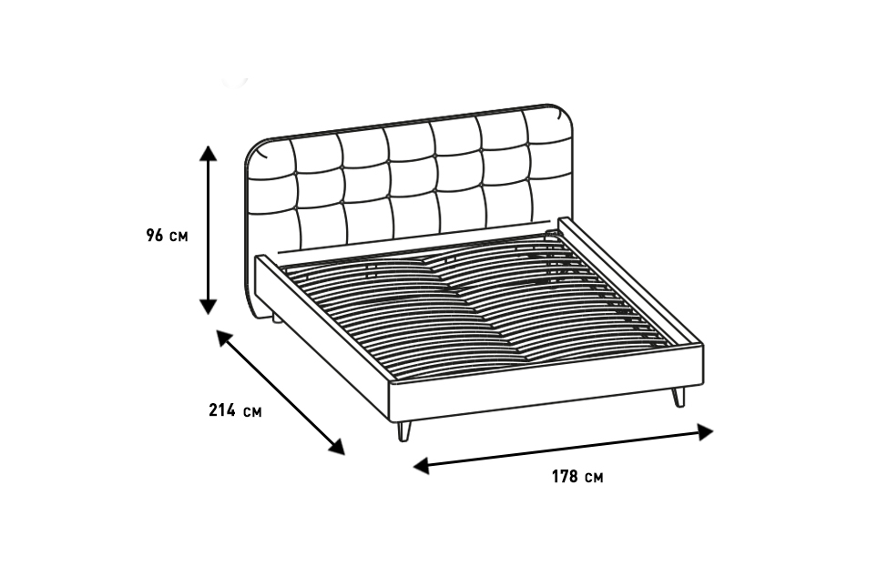 – описание: материал обивки ткань, назначение для дома, для спальни, размер спального места 160 х 200 см, размер 96x178x214 см.