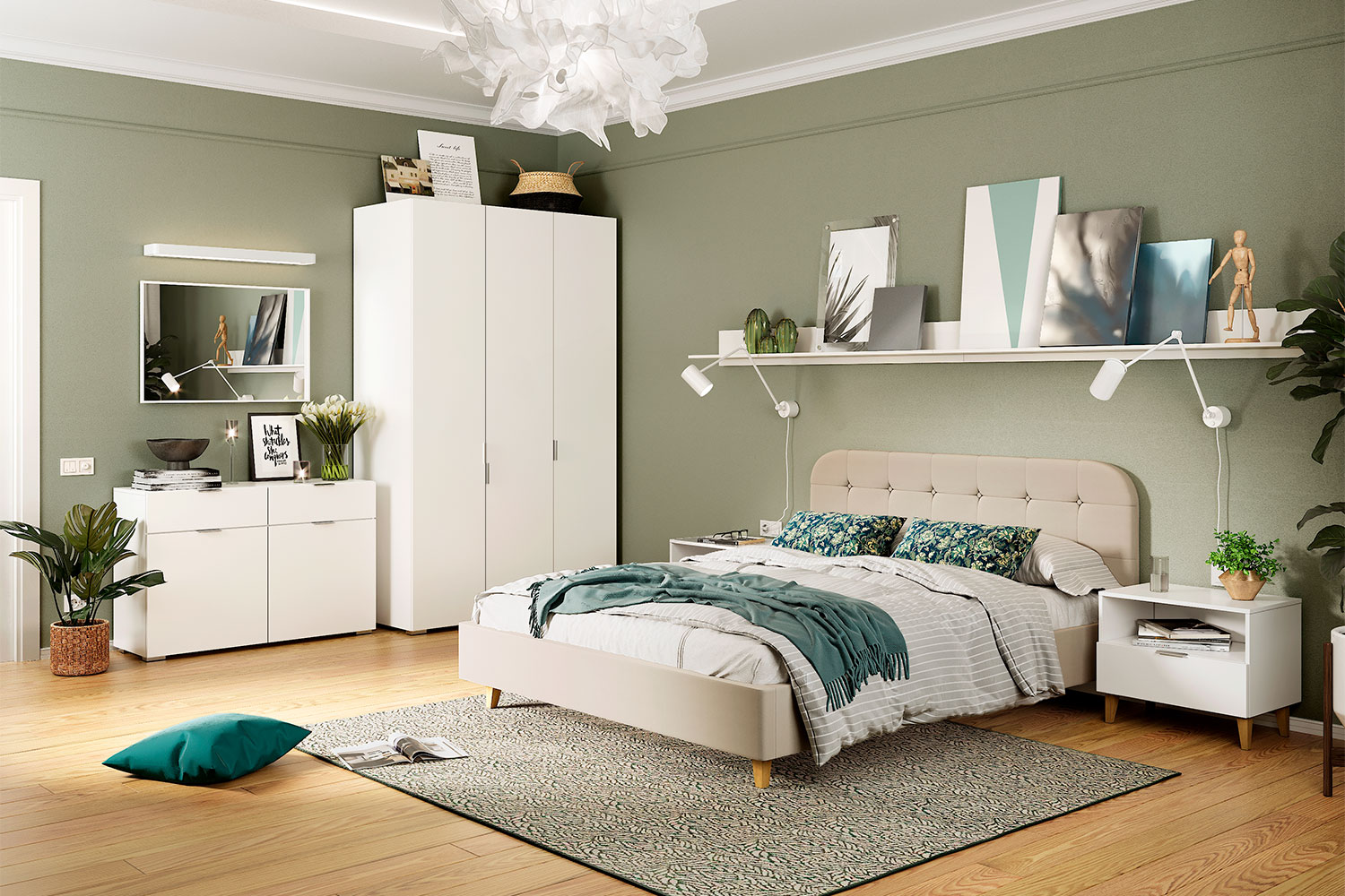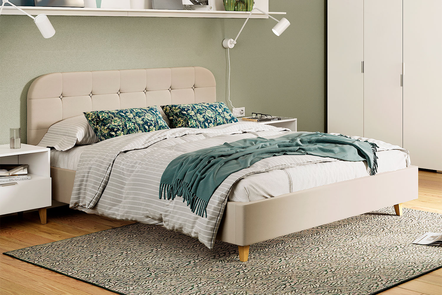 Кровать Олса имеет оригинальный внешний вид, эргономичную форму и размер. Изголовье декорировано пуговицами.