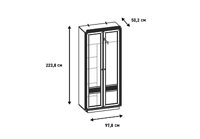- Шкаф укомплектован выдвижной штангой для одежды и полками;
