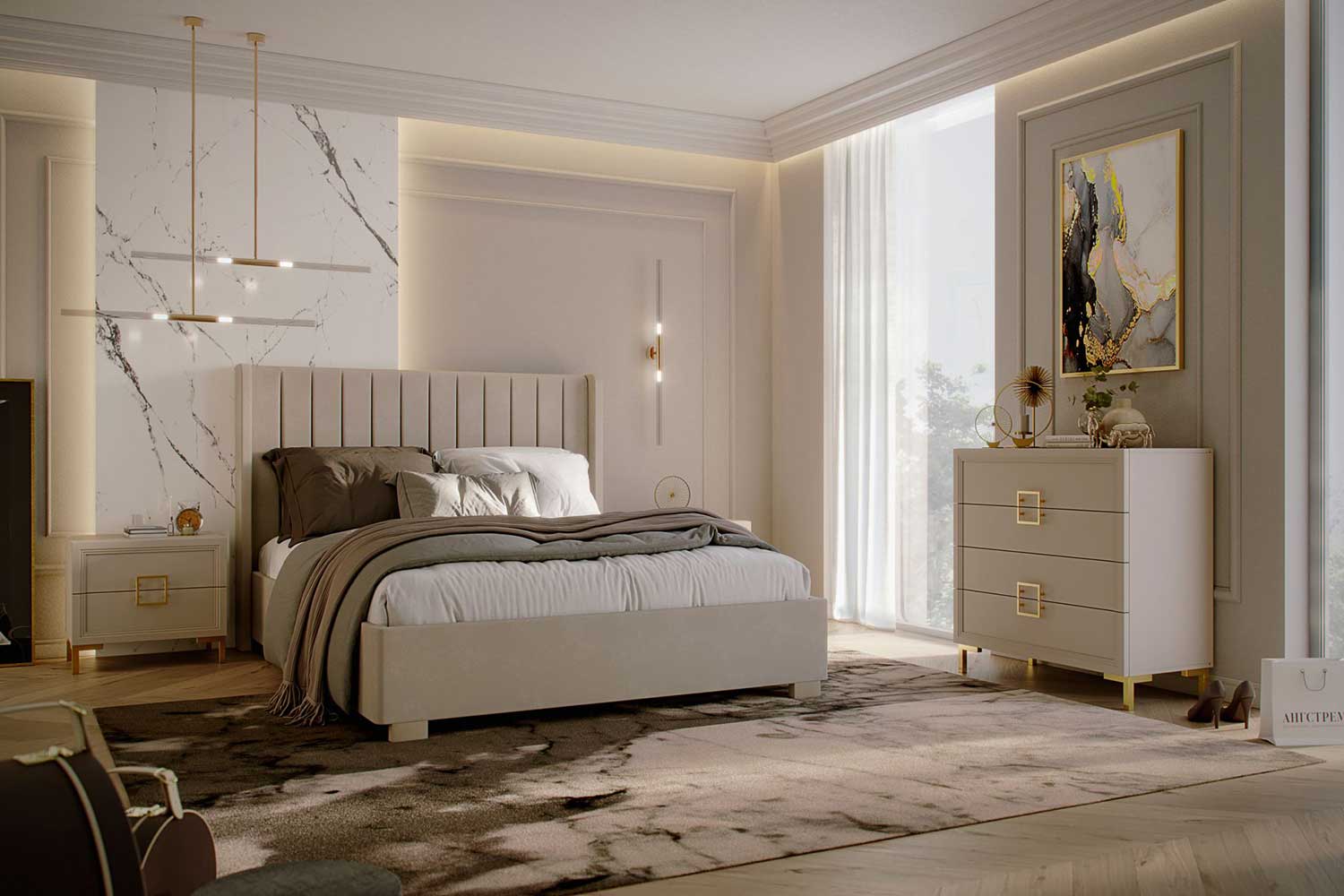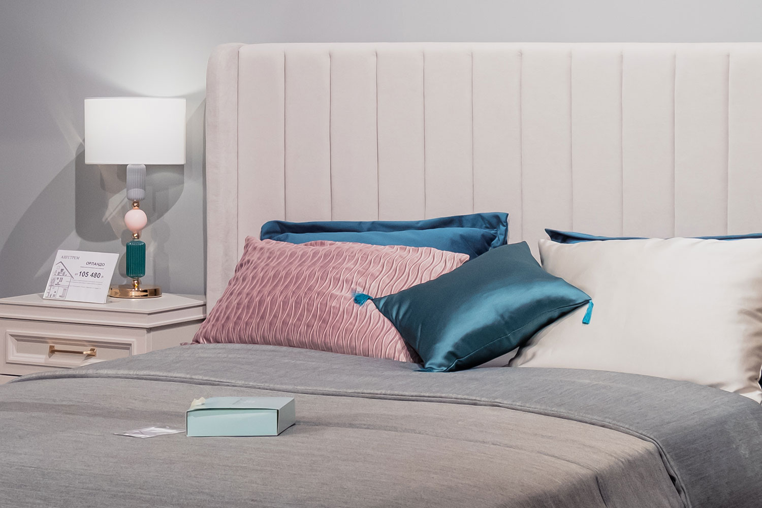 - Изголовье декорировано вертикальными линейными утяжками. Имеет эргономичную форму и размер;