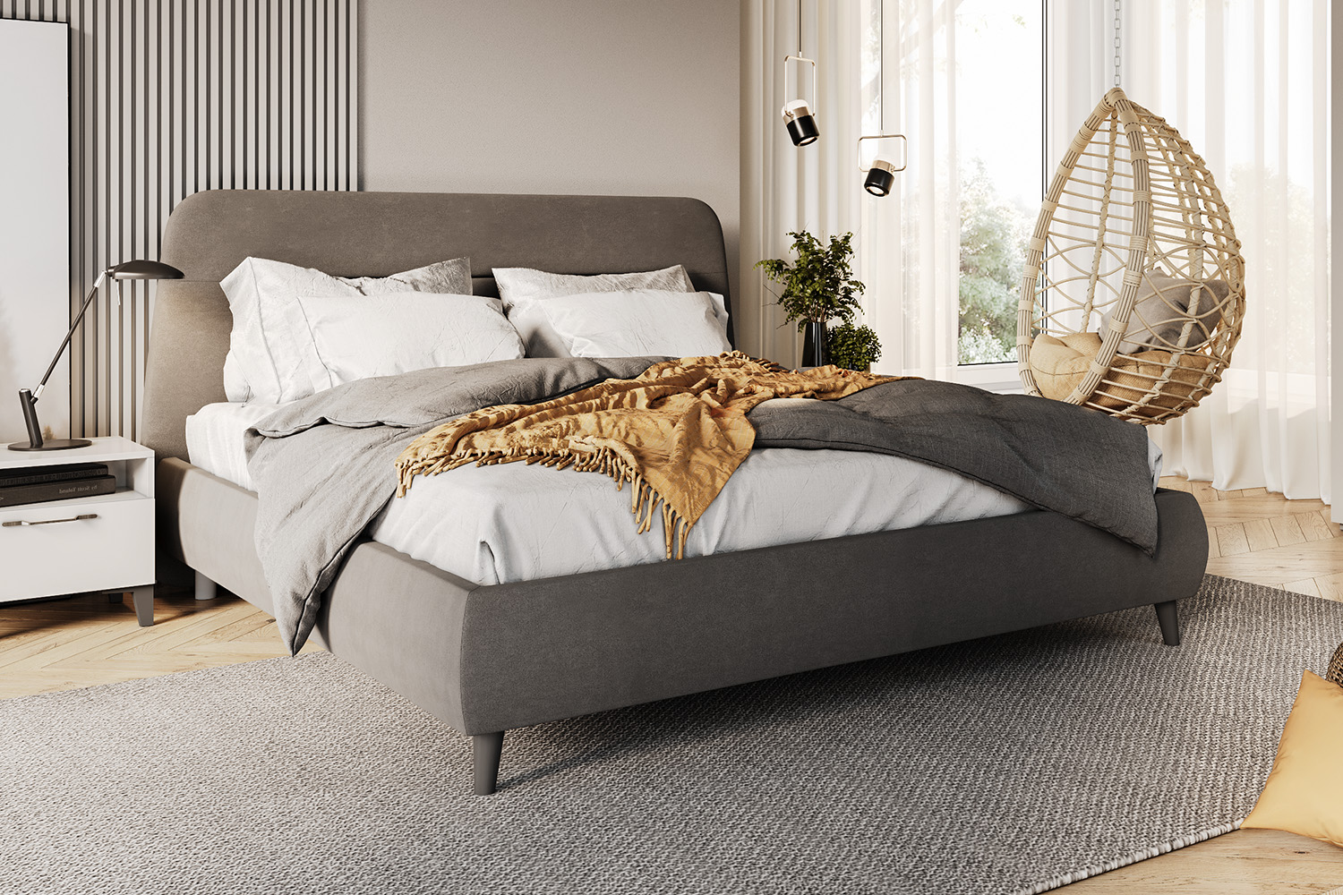 - Царги радиусной формы комплектуются общим съемным чехлом с эффектом соединения царг «под 45 гр.». Съемные чехлы на царгах кровати позволяют легко ухаживать за обивкой и при необходимости заменить её;