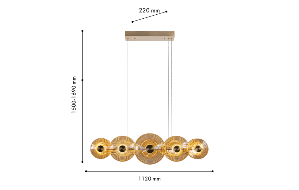 Непревзойденная модель 4571-10P от немецкой компании Favourite относится к коллекции Whirlpool и отлично подойдет для установки на потолок кухни, оформленной в стиле модерн. Подвесной светодиодный светильник Favourite Whirlpool 4571-10P с круглыми плафонами осветит помещение площадью 10 кв. м. Осветительный элемент встроен в конструкцию и не требует приобретения дополнительных лампочек. Прибор произведен с использованием материалов: стекло и металл и может использоваться для натяжного потолка. Основным цветом товара является желтый, латунный и янтарный.