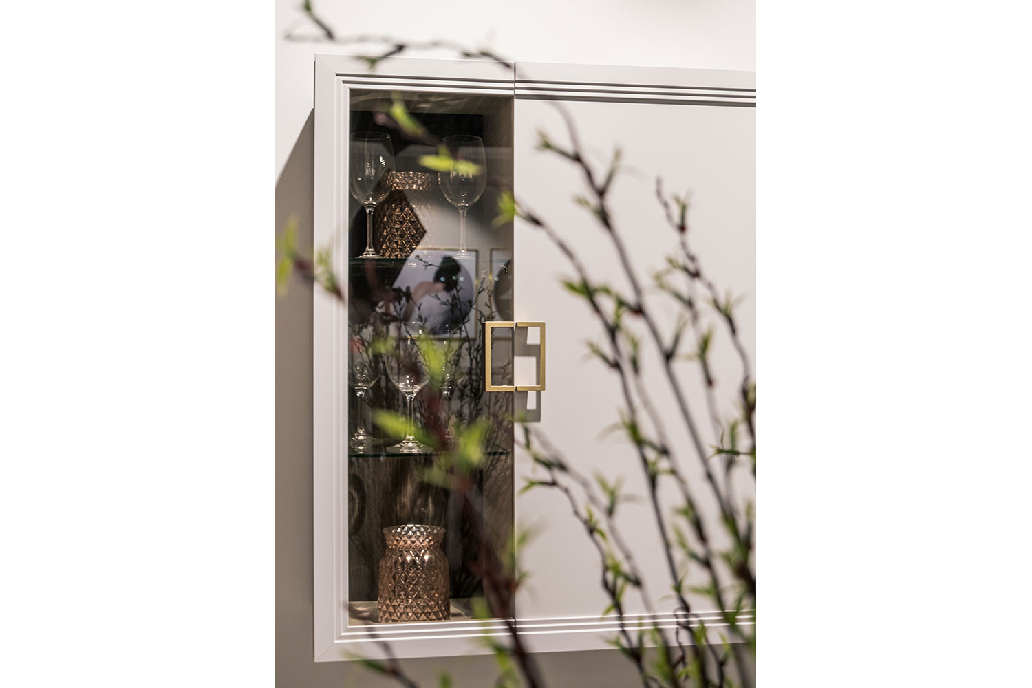- Цвет задней стенки шкафа за рамочным фасадом из стекла: кашемир серый;