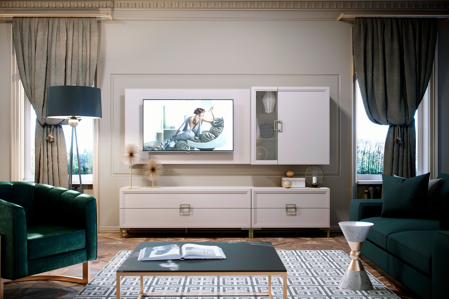 – описание: назначение для гостиной, стиль минимализм, неоклассика, ар-деко, цвет кашемир серый, трюфель коричневый.
