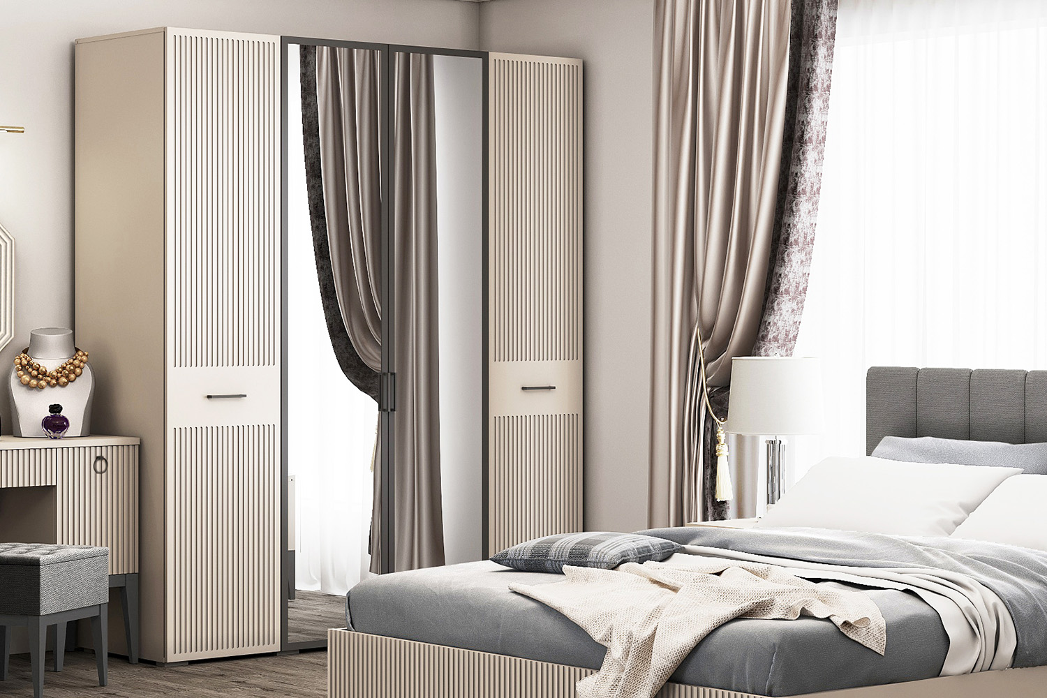 – описание: размер 213.2x180.2x60.8 см, стиль современный, контемпорари, назначение для спальни, цвет кашемир серый.