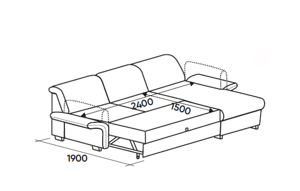 - Ширина дивана со сложенными подлокотниками: 260 см;