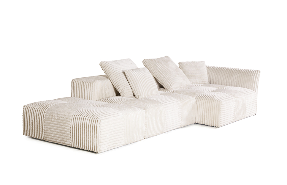 Модульный диван Космо в цвете Молочный (THERAPY 007), обивка велюр. Модули крепятся между собой при помощи инновационных скрытых замков - фиксаторов.