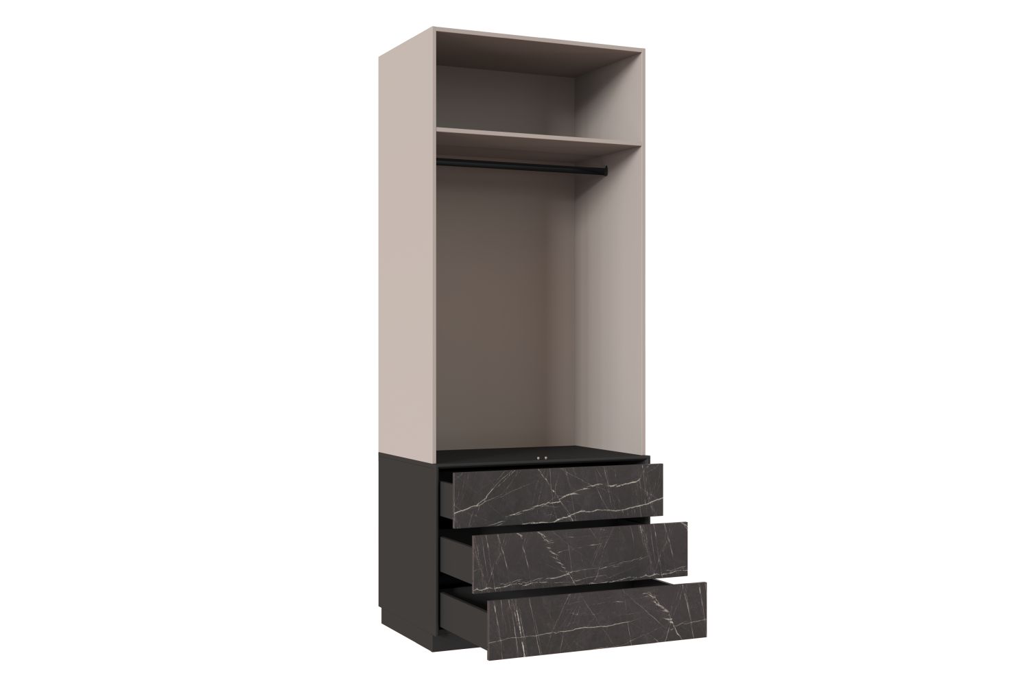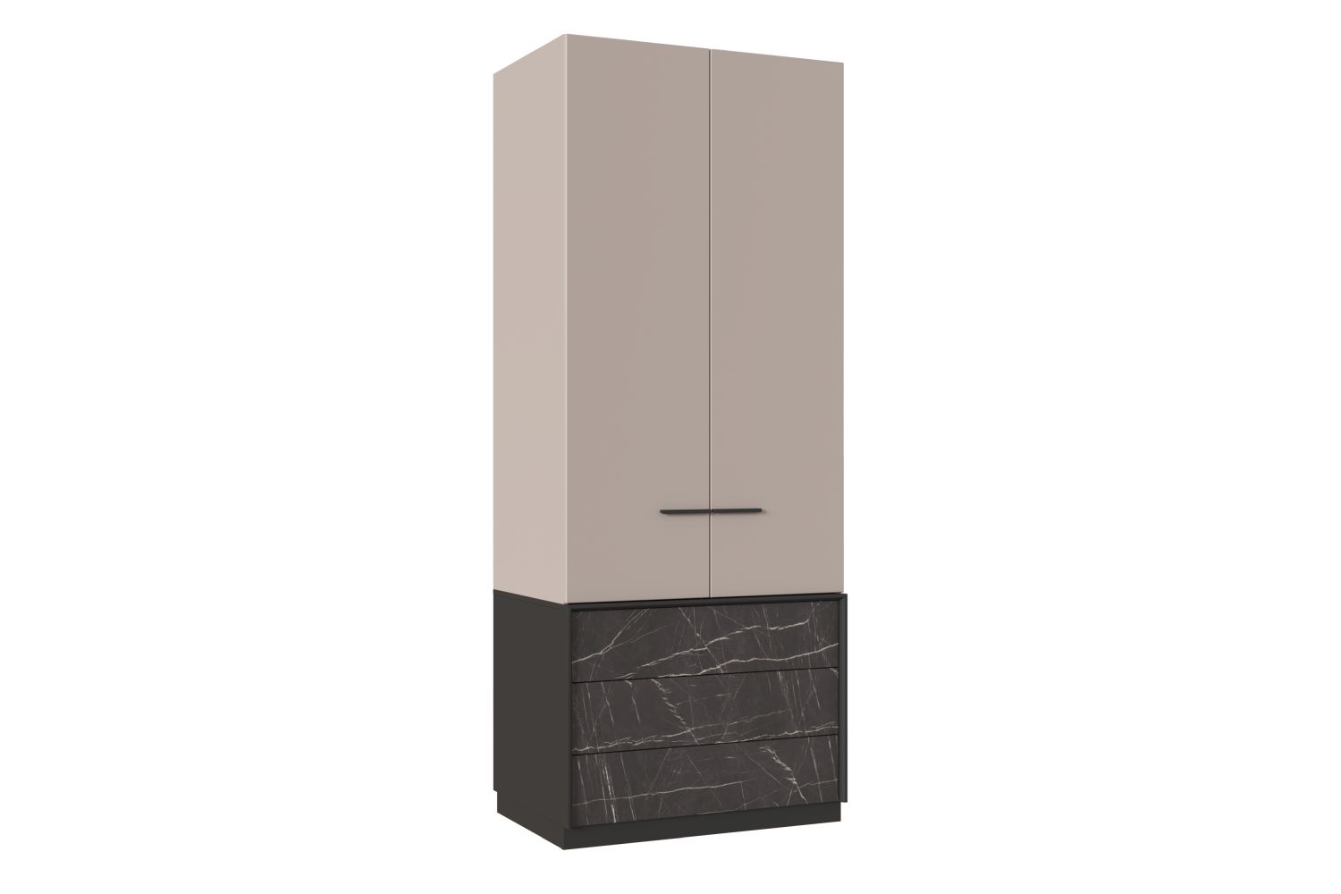 - Шкаф двухдверный с одной полкой ЛДСП и тремя выдвижными ящиками;